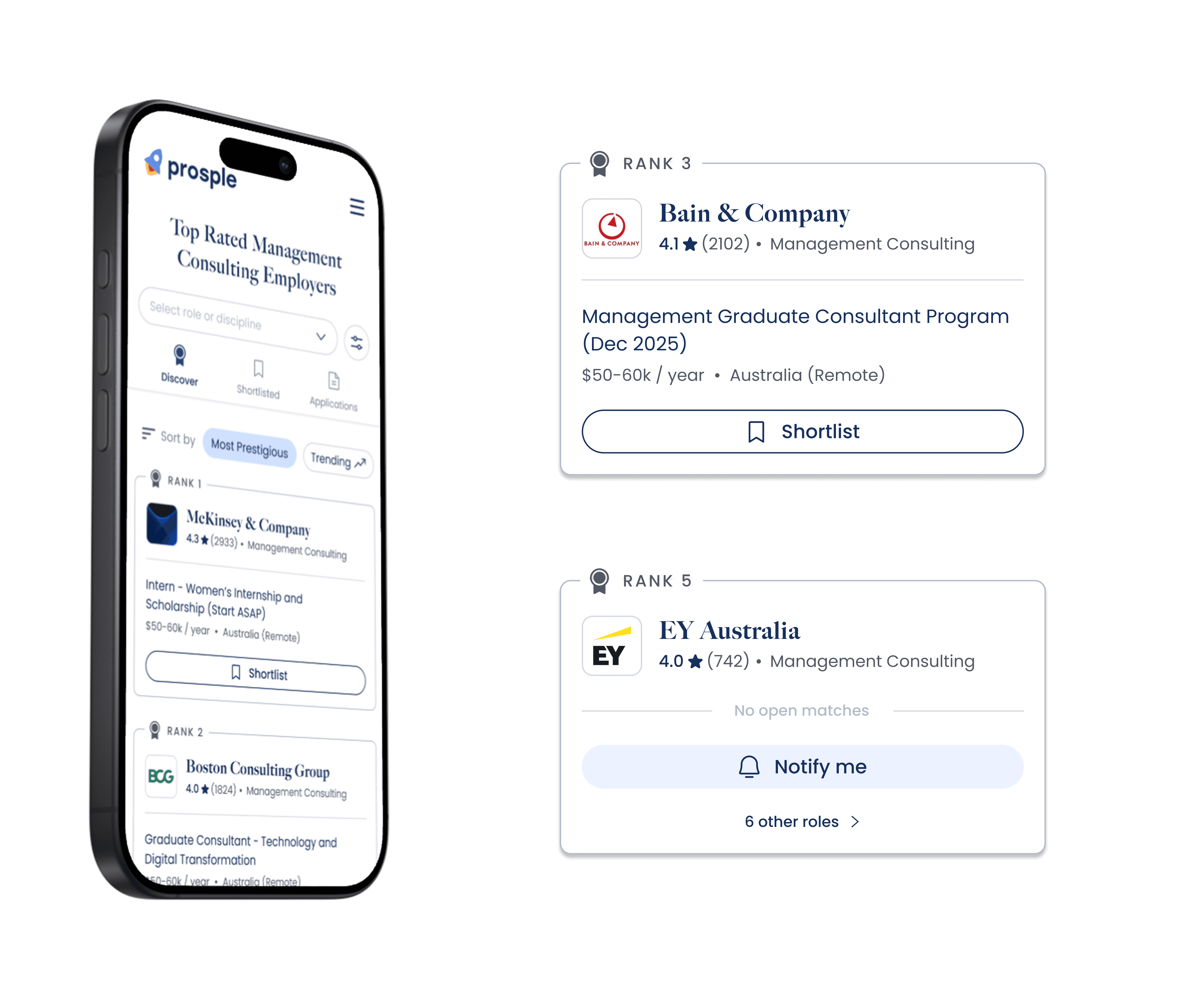 Prosple is a job board dedicated to helping students get the best possible start to their careers. One of its key differentiating products is an employer rankings board, showcasing top employers and supporting students in making informed career decisions.