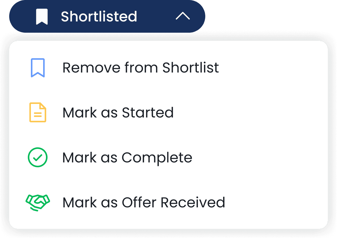 We discovered that some interactions were less intuitive than expected. We refined the copy to better reflect application stages and removed Offer Received, as this step occurs outside the Prosple platform. It was replaced with Archived to better support broader and ongoing usage.