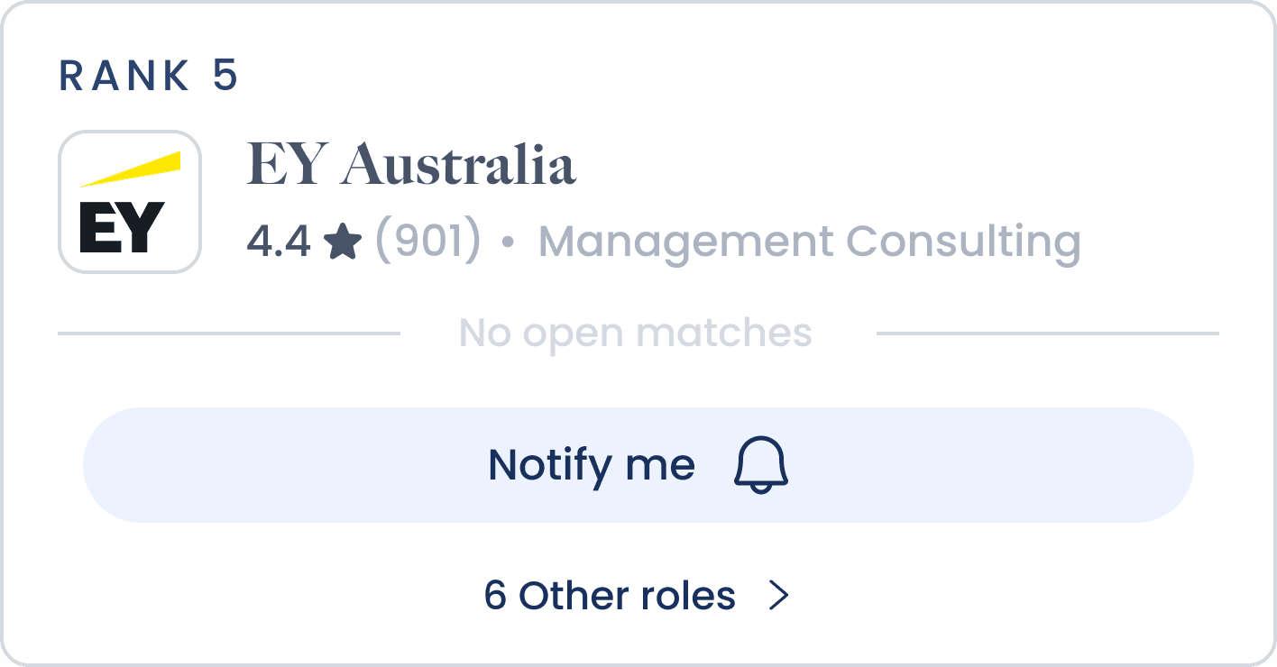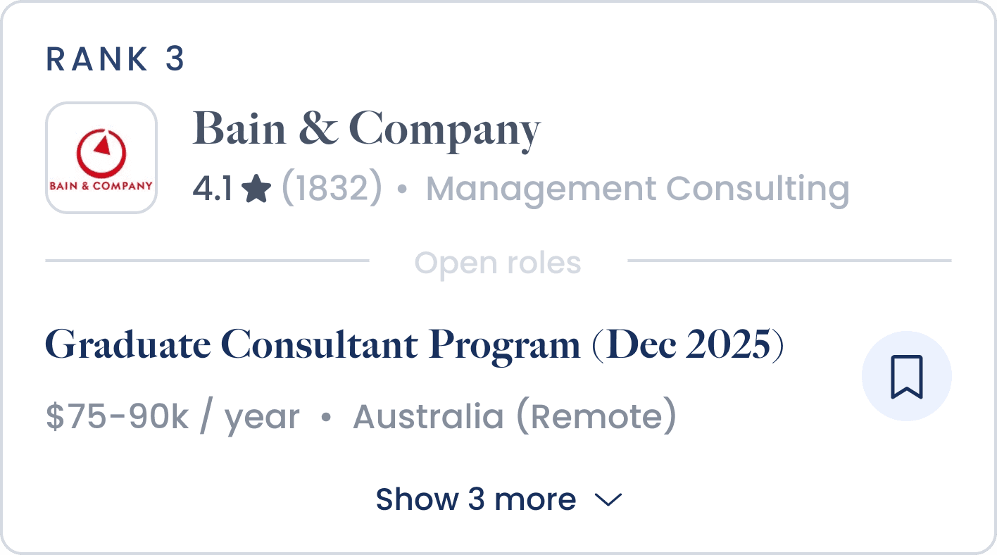 When browsing rankings, students view multiple employers at once and need a way to quickly scan and understand key information. Each card must communicate essential metadata, including the company name, rank, reviews, industry, and currently open roles.